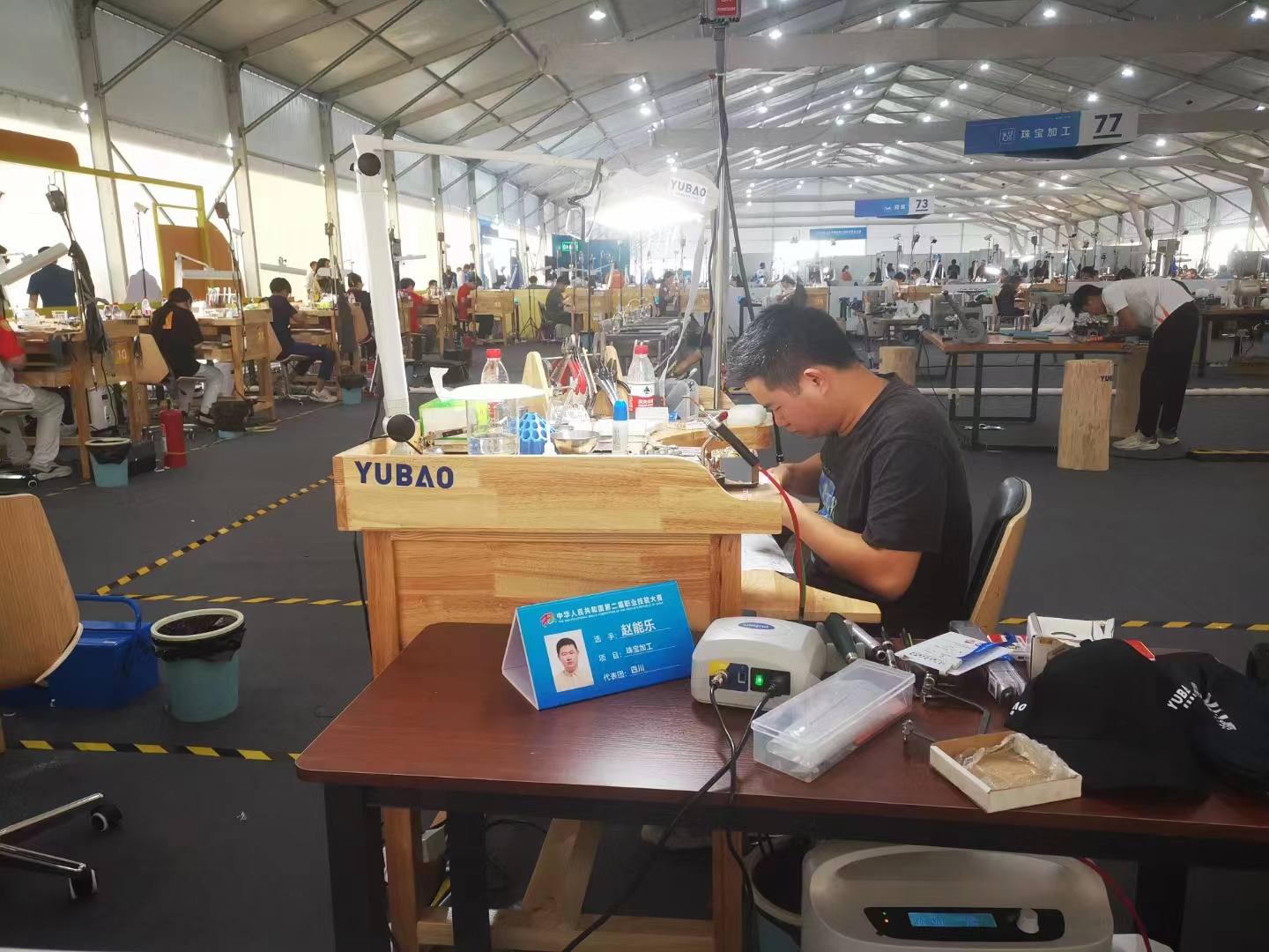 2023年9月16日至19日,由国家人社部主办,天津市政府承办,中华人民共和国第二届职业技能大赛在天津开赛。文博学院教师杜运飞、学生赵能乐代表四川省参加了珠宝加工赛项学生组和职工组的竞赛角逐;全国轻工技术能手、珠宝专业教师陈其余、顾悦,服装专业主任姜旭分别担任珠宝加工赛项和收纳整理赛项的裁判员工作;文博学院党总支书记唐天卿带队,各专业主任共计4人前往比赛现场观摩学习。