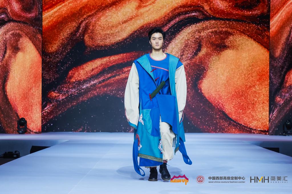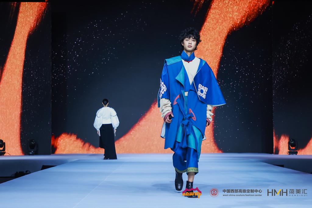 2023年1月8日,2022-2023中国西部高级定制周在成都市金牛区中国西部高级定制中心“星空秀场”拉开帷幕。本次活动由中华服饰文化研究会、北京服装学院、全国少数民族服饰保护传承标准化技术委员会、金牛区人民政府指导,清华大学文化创意发展研究院、四川文化创意产业研究院、北京服装学院继续教育学院高级定制研究中心等单位联合发起,中国西部高级定制中心、成都蓉北商圈发展服务局、金牛区荷花池国际商贸城管理委员会联合主办。文博学院服装专业教师姜旭领衔、19级学生徐嘉威创作的传统文化创意服装作品入选中国西部高级定制周“中国民族文化潮服(饰)大赛盛典”,受邀登上年度大秀舞台。