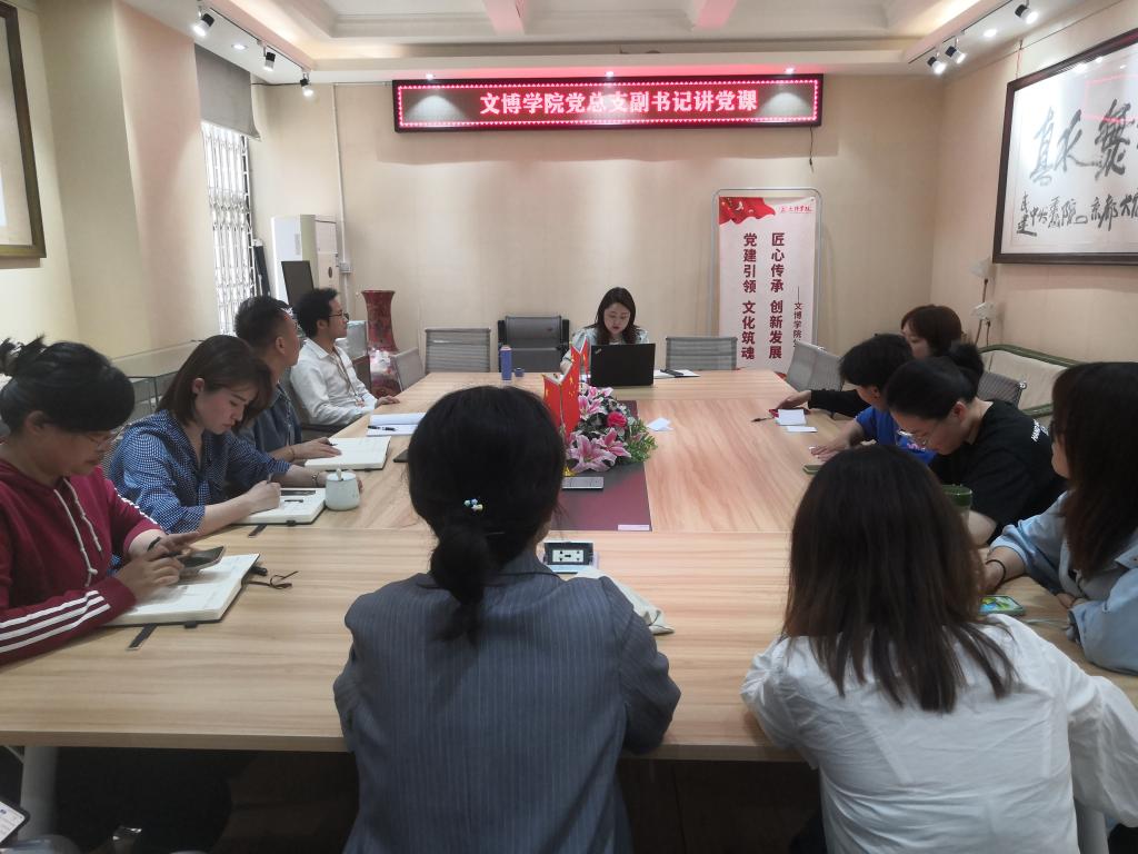 2021年5月6日,文博学院党总支副书记糜娜开展“弘扬红船精神,不忘初心使命”党课学习,文博学院全体党员教师参加学习。