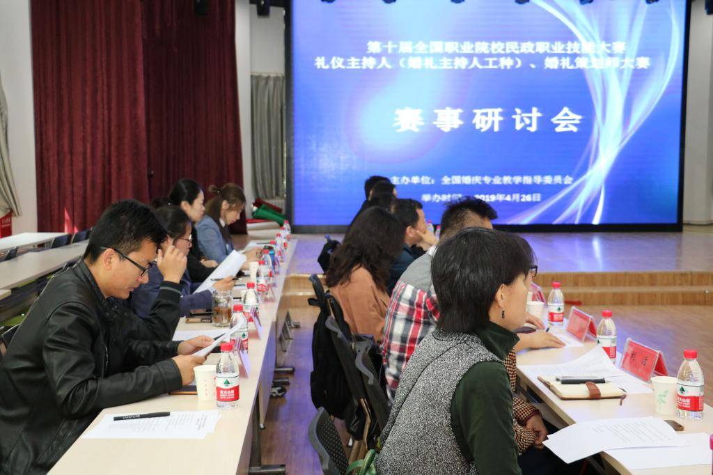 4月30日,婚庆服务与管理专业教研室曾烛老师赴北京社会管理学院参加第十届全国职业院校民政职业技能大赛婚礼主持人、婚礼策划师赛项赛事研讨会,北京社会管理学院婚礼文化与传媒艺术学院院长王晓玫主持会议。全国民政职业教育教学指导委员会秘书处办公室负责人、民政部职业技能鉴定指导中心办公室负责人孙钰林出席会议并讲话。