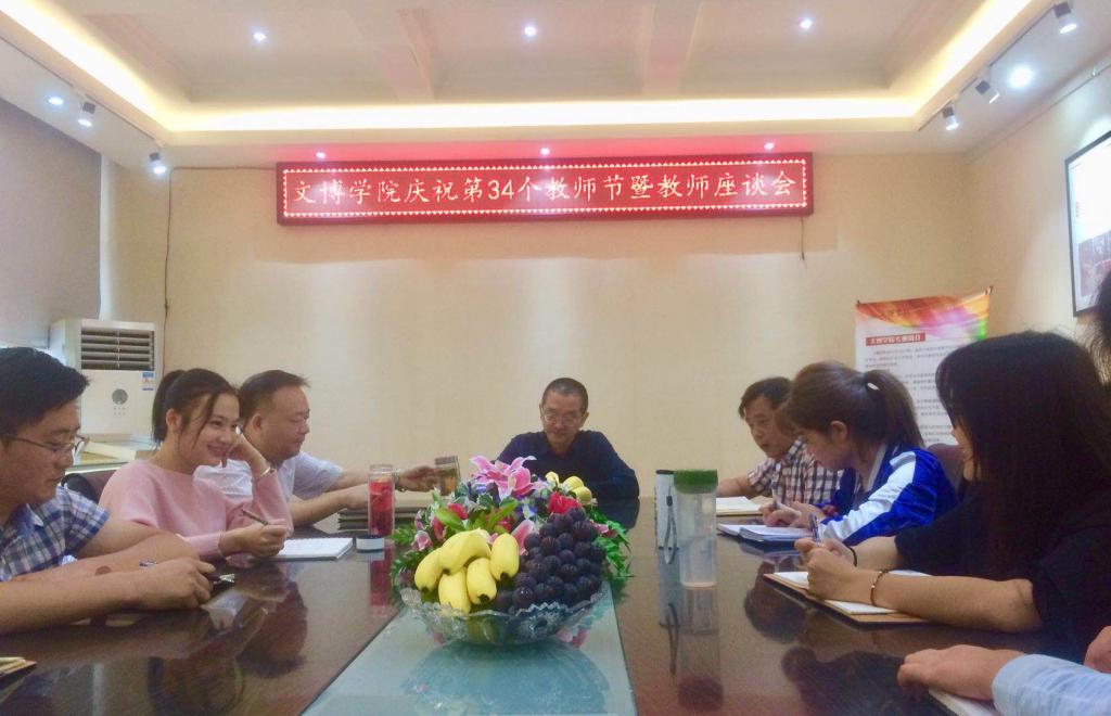 9月10日上午,文博学院举行“庆祝第34个教师节暨教师座谈会”,学校副院长李太斌深入文博学院与我院教职工共同庆祝教师节并与参会教师进行座谈。