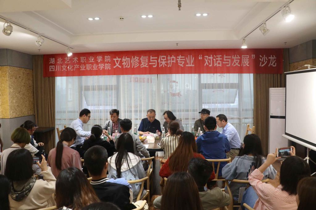 座谈会后,举行了文物修复与保护专业“发展与对话”学术沙龙,两院文物教研室相关教师参加,围绕“巴蜀文化与荆楚文化的特征”、“文物修复师文物鉴定师的职业发展”、“古代艺术品与现当代艺术的审美转变”、“两院合作资源共享”四个选题展开交流,现场同学们踊跃发言、互动积极。沙龙由文物教研室专职教师殷雄雄主持。