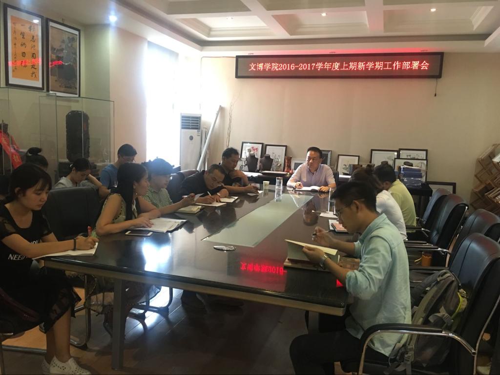 2016年9月1日,文博学院在创慧楼创一阁召开了新学期的学前工作部署会,学院全体教职工参加了此次会议。