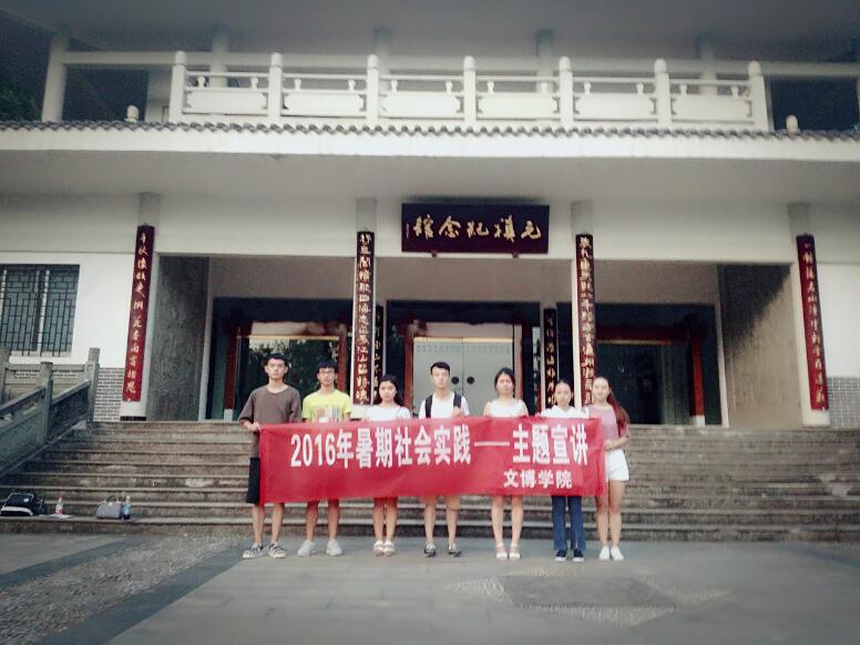 2016年8月23-26日,文博学院暑期社会实践队伍顺利抵达四川省达州市,在农村开展为期五天的以宣讲社会主义核心价值观为主题的三下乡活动。由指导老师王力带队,队员分为宣讲组与调查问卷组,其中宣讲组深入农村进行社会主义核心价值观的宣讲,加深并促进了当地人民对社会主义核心价值观的了解。另外,调查问卷小组深入集市走访了10多家店家进行问卷调查,并参观元稹纪念馆。实践最后一天师生们召开了总结会议,队员们分享了自己的心得体会并总结。