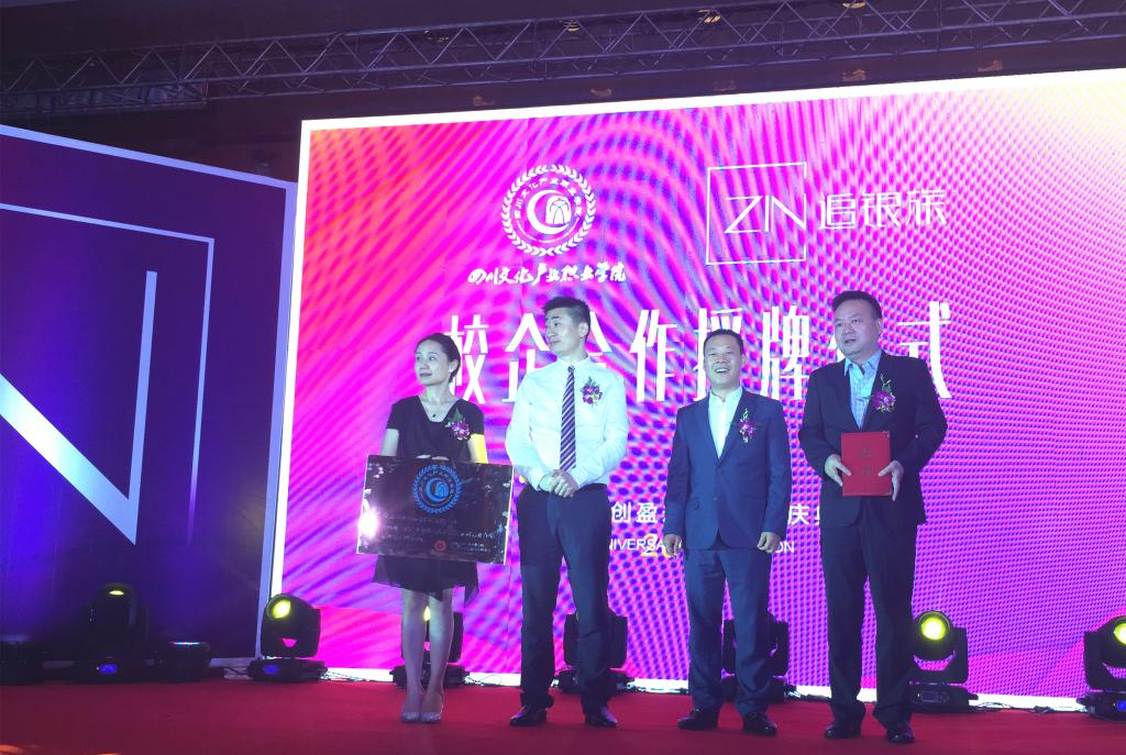 6月15日,四川文化产业职业学院文博学院院长岳湛、对外合作交流中心主任陈其余、教务科科长陆莹受邀参加成都追银族股份有限公司7周年庆典暨四川文化产业职业学院政行校企研合作办学理事单位授牌仪式。