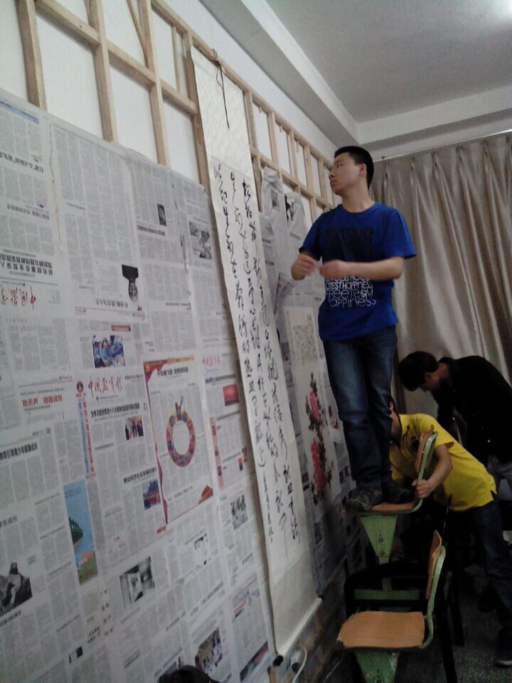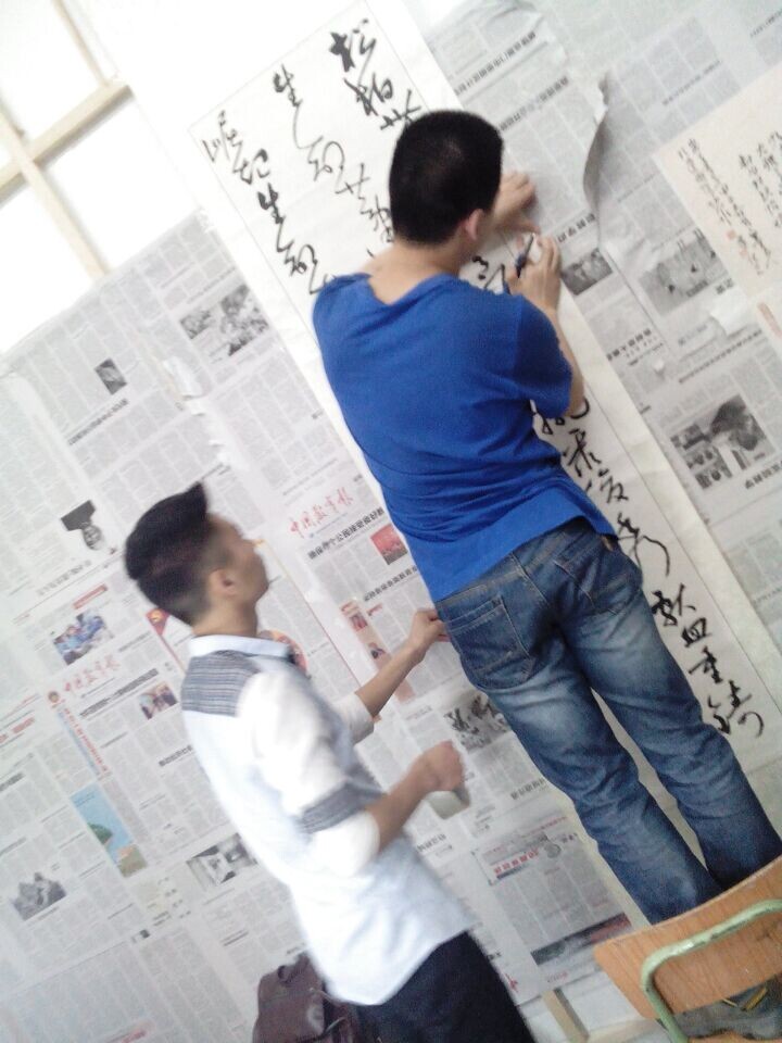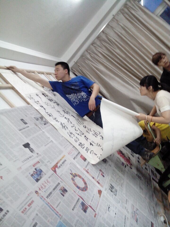 学长小心!这副字是待会要拿来拍卖嗒,这学期生活费就靠它~\(≧▽≦)/~啦啦啦