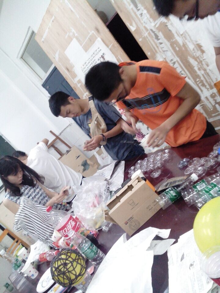 学长学姐齐心协力,改造旧物(矿泉水瓶),我可以念一句歇后语吗:“男女搭配~~~~~~~~~”