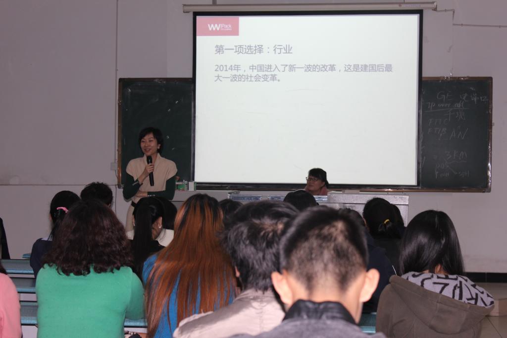 在专场招聘周活动中,文博学院紧密围绕就业形势,结合就业工作实际,10月29日晚,在第二教学大楼306教室隆重举行“你的选择,就是你的未来”专题讲座。西谷营销策划公司总经理任淼担任主讲。