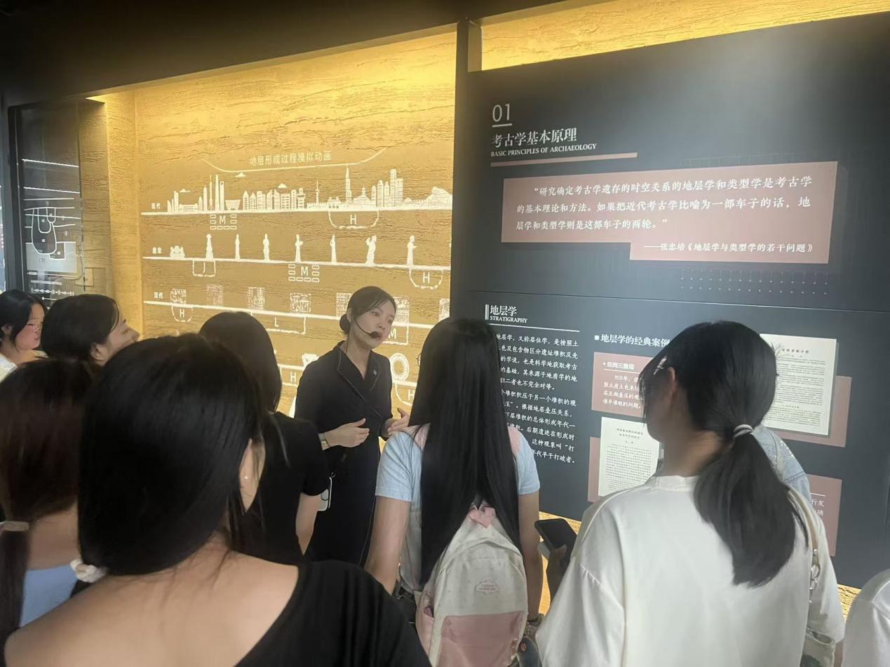 随后,同学们走进成都市文物考古研究院。在讲解员的引导下,新生们沿着历史时间轴参观了考古成果与文物展示,全面了解考古工作的科学性与人文性。同学们通过实地观摩,更加清晰地认识到自身专业与未来职业发展的紧密联系。