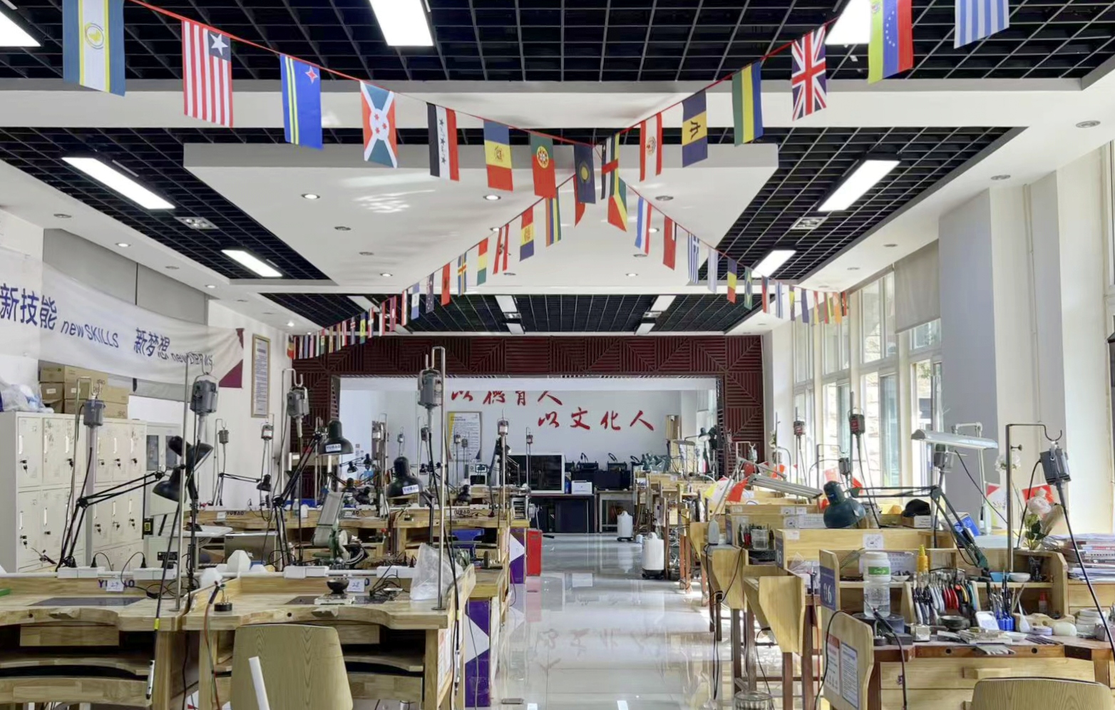 46届、47届世界技能大赛珠宝加工项目中国集训基地,对标世界技能大赛设施设备标准,配备了30个标准竞赛工位。