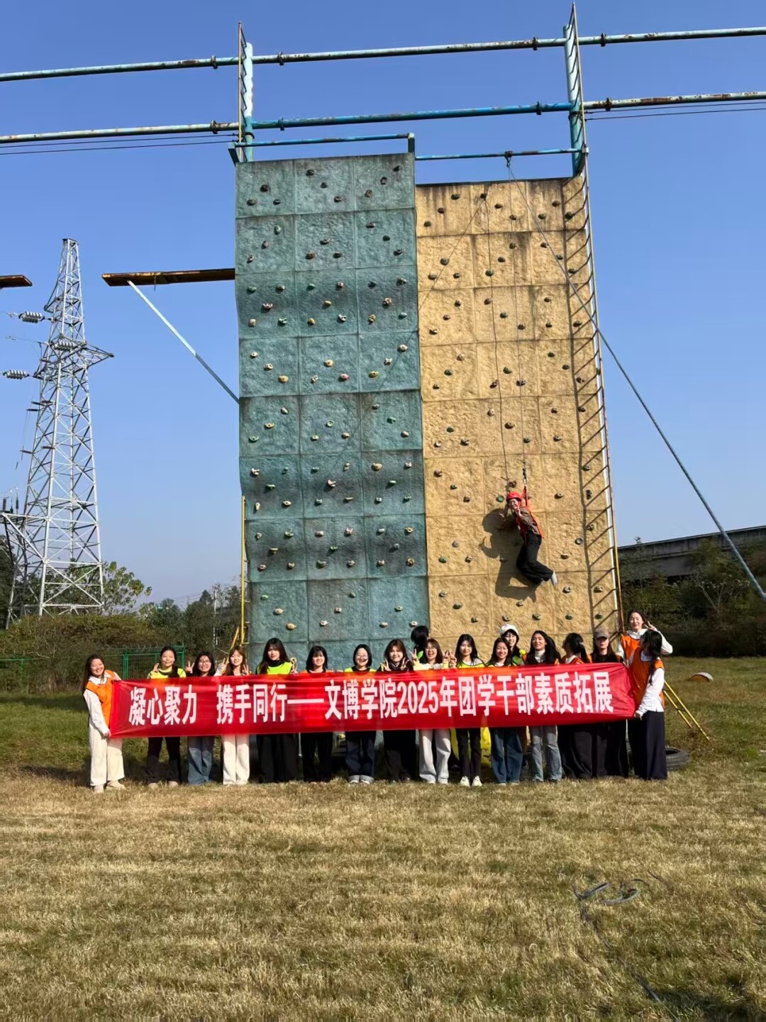 为扎实推进学生团学队伍建设,12月4日,文博学院组织全体团学干部赴都江堰红色众行国防教育基地,开展了一场别开生面的素质拓展活动。活动以“凝心聚力,携手同行”为主题,旨在通过沉浸式、高强度的团队协作与个人挑战项目,全面提升学生干部的综合素养。活动在“鼓动人心”和“记忆纸牌”等经典协作项目中拉开序幕。面对共同目标,同学们迅速打破隔阂,在一次次的尝试与调整中,深刻体会到“统一指挥、高效沟通、默契配合”的...