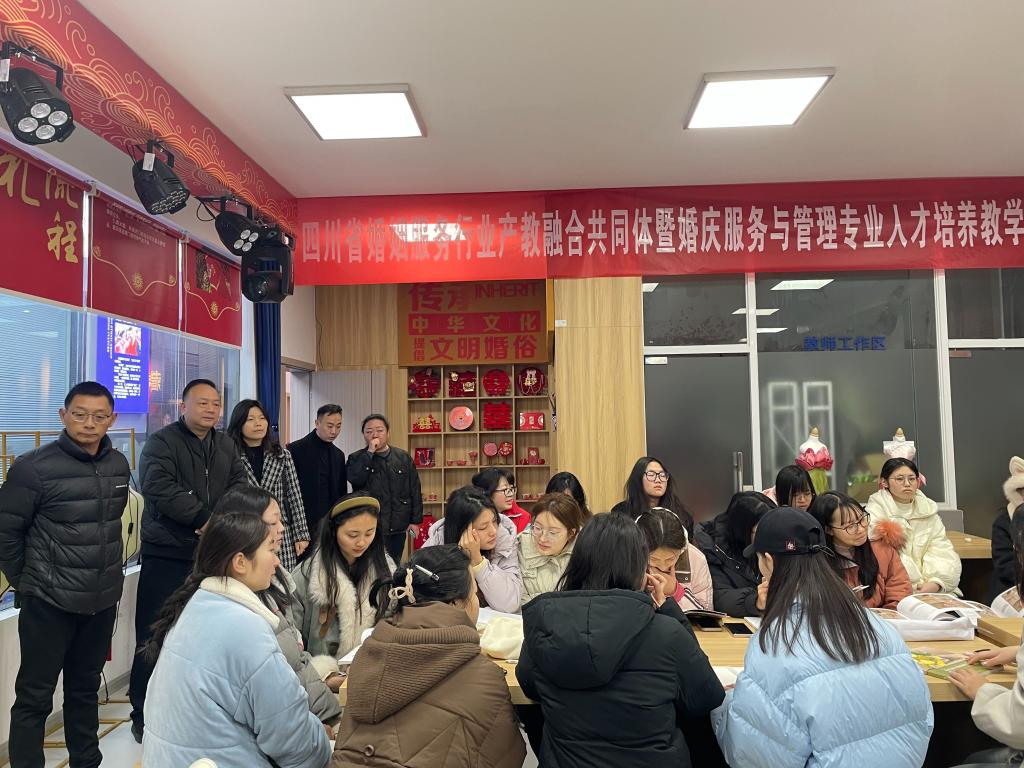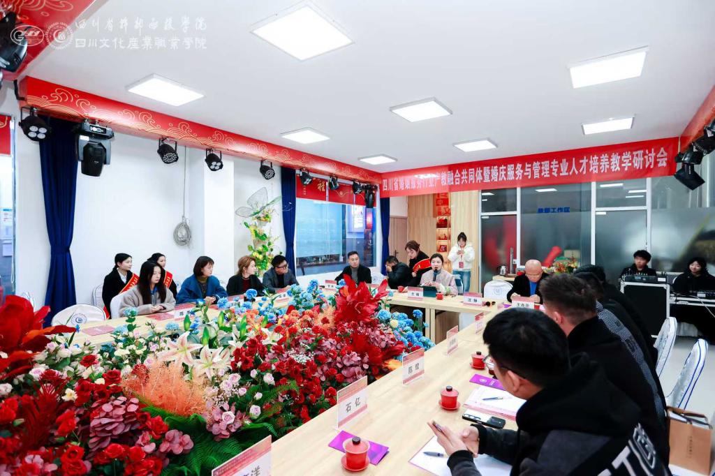 12月19日,四川省婚姻服务行业产教融合共同体暨婚庆服务与管理专业人才培养教学研讨会在创慧楼婚俗空间成功举办。四川文化产业职业学院团委书记兰楠、文博学院党总支副书记刘林、婚庆专业主任曾烛、四川省婚庆行业协会会长汪静、婚庆专业学科带头人王亦平等学校、行业代表出席。四川省婚庆行业协会副秘书长高媛担任会议主持。会上,曾烛介绍了我院婚庆服务与管理专业近期教育教学情况以及面临的问题;四川省婚庆行业协会执行秘....