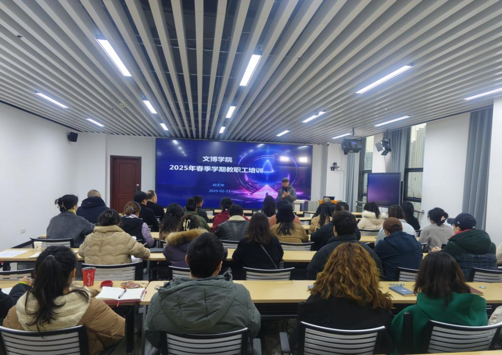 2月21日上午,文博学院组织全院教职工在教师发展中心围绕业务能力提升进行了专题培训。学院党总支书记向天华以学院现情为导向,从近年来国家职业教育政策解读、学生管理、教学管理、行政管理,以及教学建设等方面进行了较为系统的培训,要求要进一步明确学院发展定位,围绕珠宝首饰和文物修复保护两大专业群,明晰发展方向,以项目为抓手,坚持靶向发力,对标培育一批标志性成果,做优做特做强两大专业群;要强化学生管理、教学...